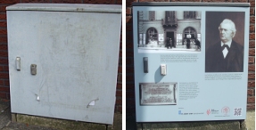 Historische Bilder und Erläuterungen auf den Stromverteilerkästen knüpfen