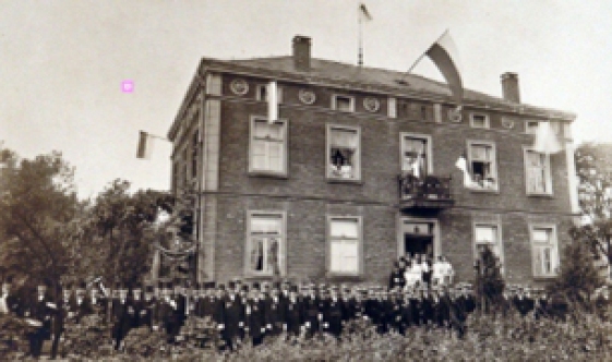 Den Auftrag hierzu erhielten der Maurermeister Th. Holthaus, Bauunternehmer Joseph Schmetkamp und Anton Brandhove. Dieses Gebäude wurde zunächst als Jugendheim mit Turnhalle, später zum Teil als Schulräume und zuletzt als Notunterkunft genutzt.