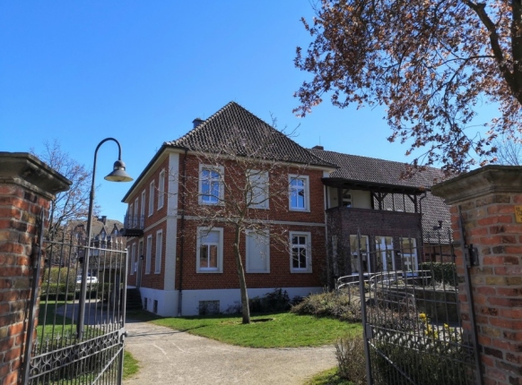 Der Bereich Drostenhof (hinter dem Bürgerhaus) war dem Areal zugeordnet, dem Hof des Drosten = Verwalter des Bischofs und der war adelig. Spätere Eigentümer, (Grafen von Merveldt) wohnten nicht mehr