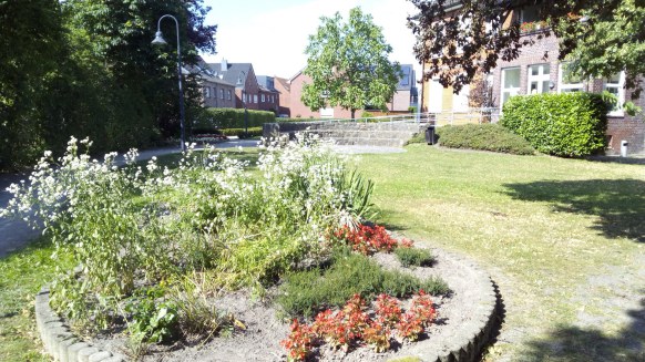 viele Auswärtige, Patienten des Stiftes und Touristen loben den schönen Spielplatz mit „Fines Laden“ oder die Rote Bank und das Bücherregal, immer mit Blick auf St. Martin.