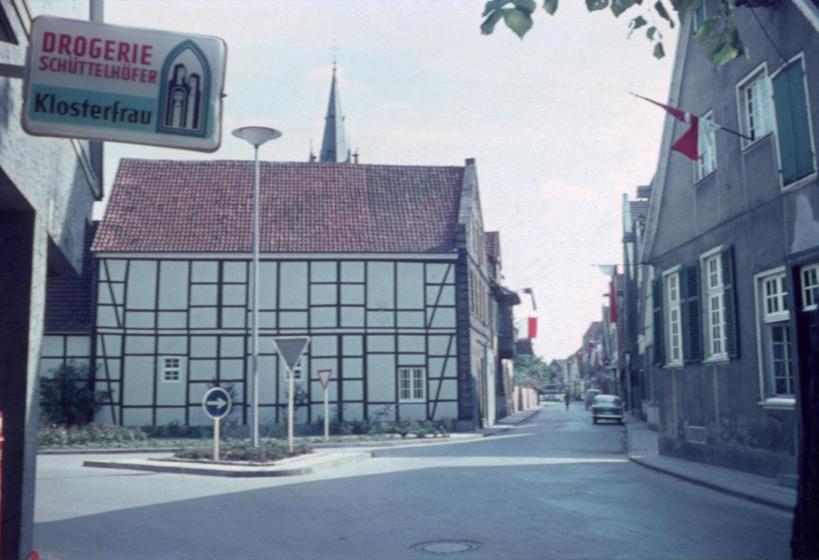 Fachwerkhäuser konnten gerettet werden. Und wenn auf den alten Fotos die Häuser auch so schön aussehen, die Innenstadt und die Weststraße war eng, gerade in den Hinterhof-Bereichen. So zu erkennen
